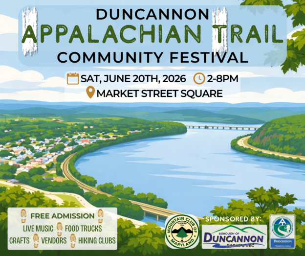 The Duncannon Appalachian Trail Community (DATC) hosts this celebration of the AT, the hikers, and most importantly, Duncannon’s contributions to the AT community as the geographical mid-point of the entire AT. Thank you to the Borough of Duncannon, The Mountain Club of Maryland, and the Duncannon Sportsman’s Association for being long time sponsors of the festival!